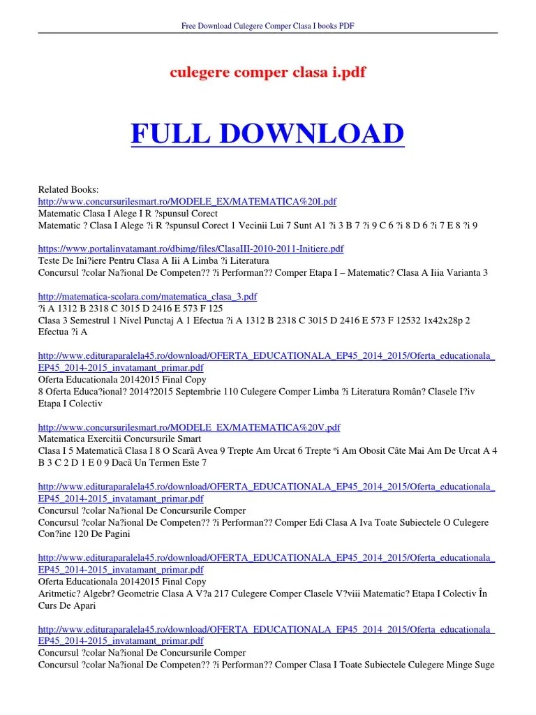 04.11.2019 · articole din modele comper 2020 clasa pregatitoare romana matematica scrise de profesor jitaru ionel.. 05.02.2020 · articole din subiecte comper 2020 matematica clasa pregatitoare scrise de profesor jitaru ionel Aici poti vedea subiectele pentru comper 2020 etapa 1 si rezolvarile corecte Clasa pregatitoare si clasele 1, 2, 3, 4, 5, 6,7, 8. Aveți mai jos subiectele și baremele … 04.11.2019 · articole din modele comper 2020 clasa pregatitoare romana matematica scrise de profesor jitaru ionel.. Aici poti vedea subiectele pentru comper 2020 etapa 1 si rezolvarile corecte