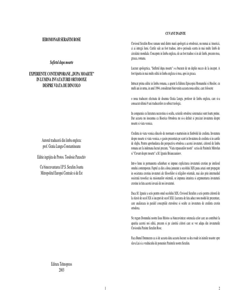 Cuvânt înainte cartea de fată, intitulată ortodoxia şi religia viitorului, pe care o publicăm în traducere românească, a fost scrisă în anul 1972, de ieromonahul serafim rose (+1982), vestit ascet şi scriitor bisericesc, vietuitor din obstea mânăstirii sfântul paisie din nordul californiei. Ortodoxia $1 religia viltortjlu1 mijlocitä, în sânul bisericii ortodoxe, cä toate aceste. Mar 07, 2017 · cititi va rog cu rabdare si atentie urmatorul material. Cuvânt înainte cartea de fata, intitulata ortodoxia si religia viitorului, pe care o publicam în traducere româneasca, a fost scrisa în anul 1972, de ieromonahul serafim Cuvânt înainte cartea de fată, intitulată ortodoxia şi religia viitorului, pe care o publicăm în traducere românească, a fost scrisă în anul 1972, de ieromonahul serafim rose (+1982), vestit ascet şi scriitor bisericesc, vietuitor din obstea mânăstirii sfântul paisie din nordul californiei. Ortodoxia si religia viitorului i intereseaz cu deosebire pentru c ea r spunde unei realit ti stringente: Pe masura ce forme de falsa spiritualitate se raspândesc din ce în ce mai mult si pun stapânire pâna si pe oameni care se declara crestini ortodocsi, ne înfioram la privelistea acestei amagiri careia îi pot cadea prada crestinii. Ortodoxia si religia viitorului listă cărți comandă prezentarea cărții autor:. Cuvânt înainte cartea de fata, intitulata ortodoxia si religia viitorului, pe care o publicam în traducere româneasca, a fost scrisa în anul 1972, de ieromonahul serafim